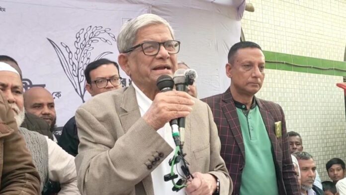 ধানের শীর্ষে ভোট চেয়ে মির্জা ফখরুল বলেন, ‘এটাই আমার শেষ নির্বাচন, আপনারা আমাকে সমর্থন করে ধানের শীষে ভোট দেবেন। তাহলে আপনাদের কল্যাণে কাজ করার সুযোগ পাবো।’