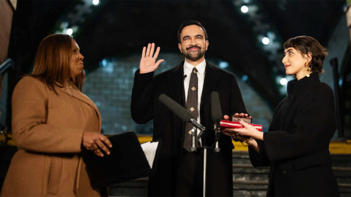 অনলাইন ডেস্ক : পবিত্র কোরআন শরিফ ছুঁয়ে শপথ নিয়ে নিউ ইয়র্ক সিটির ইতিহাসে এক নতুন অধ্যায় সূচনা করলেন প্রথম মুসলিম মেয়র ৩৪ বছর বয়সী জোহরান মামদানি। নিউইয়র্ক সিটির ইতিহাসে এর আগে কোনো মেয়রই কোরআনে ছুঁয়ে শপথ পাঠ করেননি।