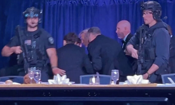 অনলাইন ডেস্ক : যুক্তরাষ্ট্রের রাজধানী ওয়াশিংটন ডিসিতে হোয়াইট হাউস করেসপন্ডেন্টস অ্যাসোসিয়েশনের (ডব্লিউএইচসিএ) বার্ষিক নৈশভোজ অনুষ্ঠানে বন্দুকধারীর হামলার ঘটনা ঘটেছে। গতকাল শনিবার (২৫ এপ্রিল) রাতে এক বন্দুকধারী শটগান নিয়ে নিরাপত্তা বেষ্টনী ভাঙার চেষ্টা করলে নিরাপত্তাকর্মীরা প্রেসিডেন্ট ডোনাল্ড ট্রাম্প ও ফার্স্ট লেডি মেলানিয়া ট্রাম্পকে অনুষ্ঠানস্থল থেকে সরিয়ে নেন। এক প্রতিবেদনে রয়টার্স এ তথ্য জানিয়েছে।