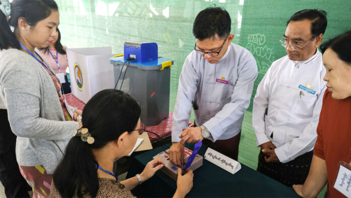 মিয়ানমারের নির্বাচন কমিশনের এক প্রতিবেদনে এএফপি জানিয়েছে, আজ ২৮ ডিসেম্বর থেকে আগামী ২৫ জানুয়ারি পর্যন্ত তিন ধাপে চলবে ভোটগ্রহণ। আজ রোববার প্রথম ধাপে রাজধানী নেইপিদো, বাণিজ্যিক রাজধানী ও বৃহত্তম শহর ইয়াঙ্গুন, দ্বিতীয় বৃহত্তম শহর মান্দালয়সহ জান্তানিয়ন্ত্রিত কয়েকটি শহর ও গ্রামাঞ্চলে ভোটগ্রহণ চলছে। স্থানীয় সময় সকাল ৬ টা (বাংলাদেশ সময় সকাল ৬টা ৩০মিনিট) থেকে শুরু হয়েছে ভোটগ্রহণ। জাতীয় পার্লামেন্ট ও প্রাদেশিক আইনসভা— উভয় নির্বাচনের ভোটগ্রহণ চলছে।